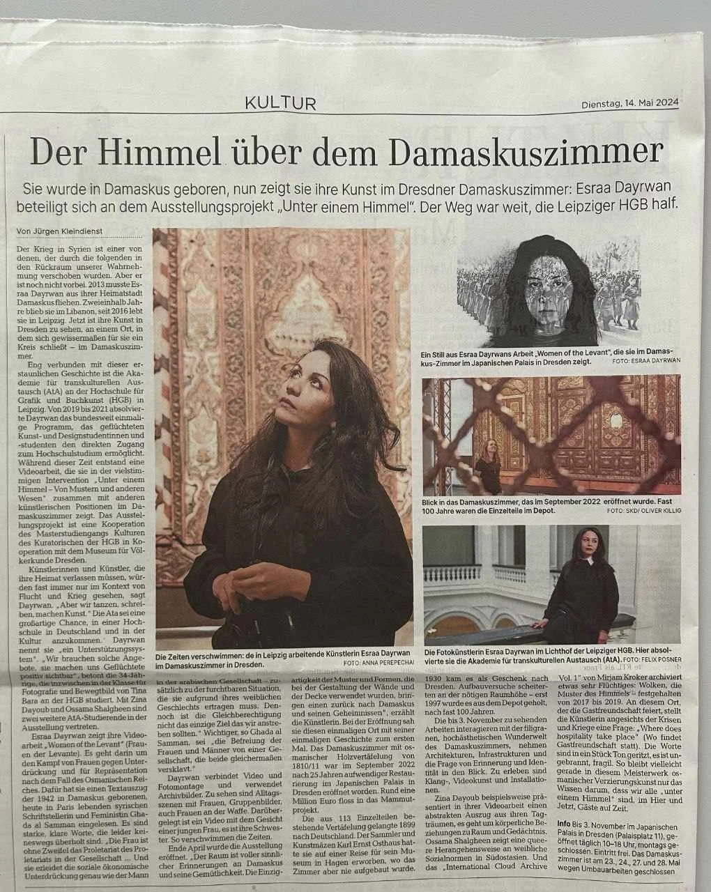 In 2013, after the outbreak of the Syrian civil war, she moved with her family to Beirut, where she worked as a translator. At the end of 2015, she moved to Leipzig, where she now studies and works.
